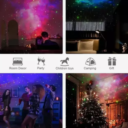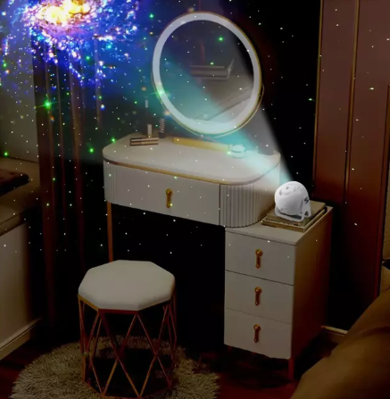 O projetor Galaxy Star cria um efeito incrível de estrelas e nebulosas no teto e nas paredes, trazendo uma atmosfera relaxante, romântica e futurista para o seu espaço.